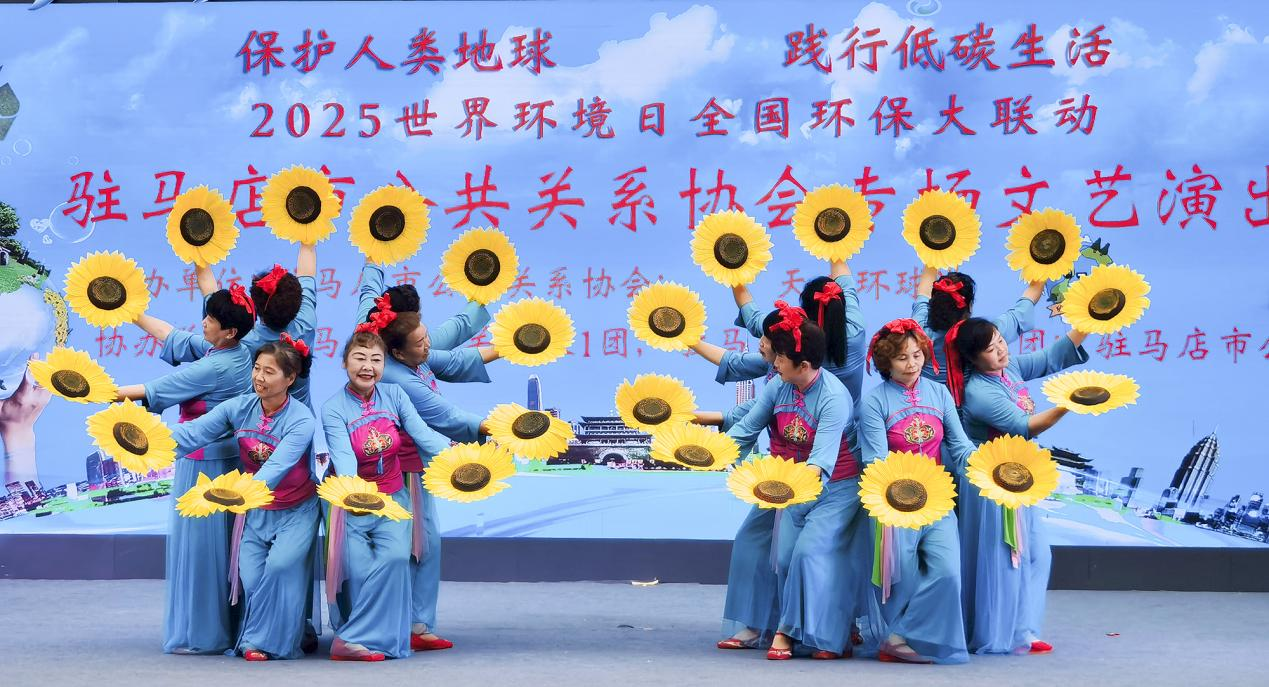 演出开始,河南省普通话推广形象大使、驻马店市公共关系协会副秘书长、主持人李玉姝走上舞台宣布:为积极响应中国国际公共关系协会地方组织委员会倡导的“2025世界环境日全国联动大型环保行动”,驻马店市公共关系协会特此组织了这场文艺演出,旨在推动全社会形成关心、支持和参与环境保护的良好氛围。话音刚落,台下顿时响起了一阵热烈的掌声。